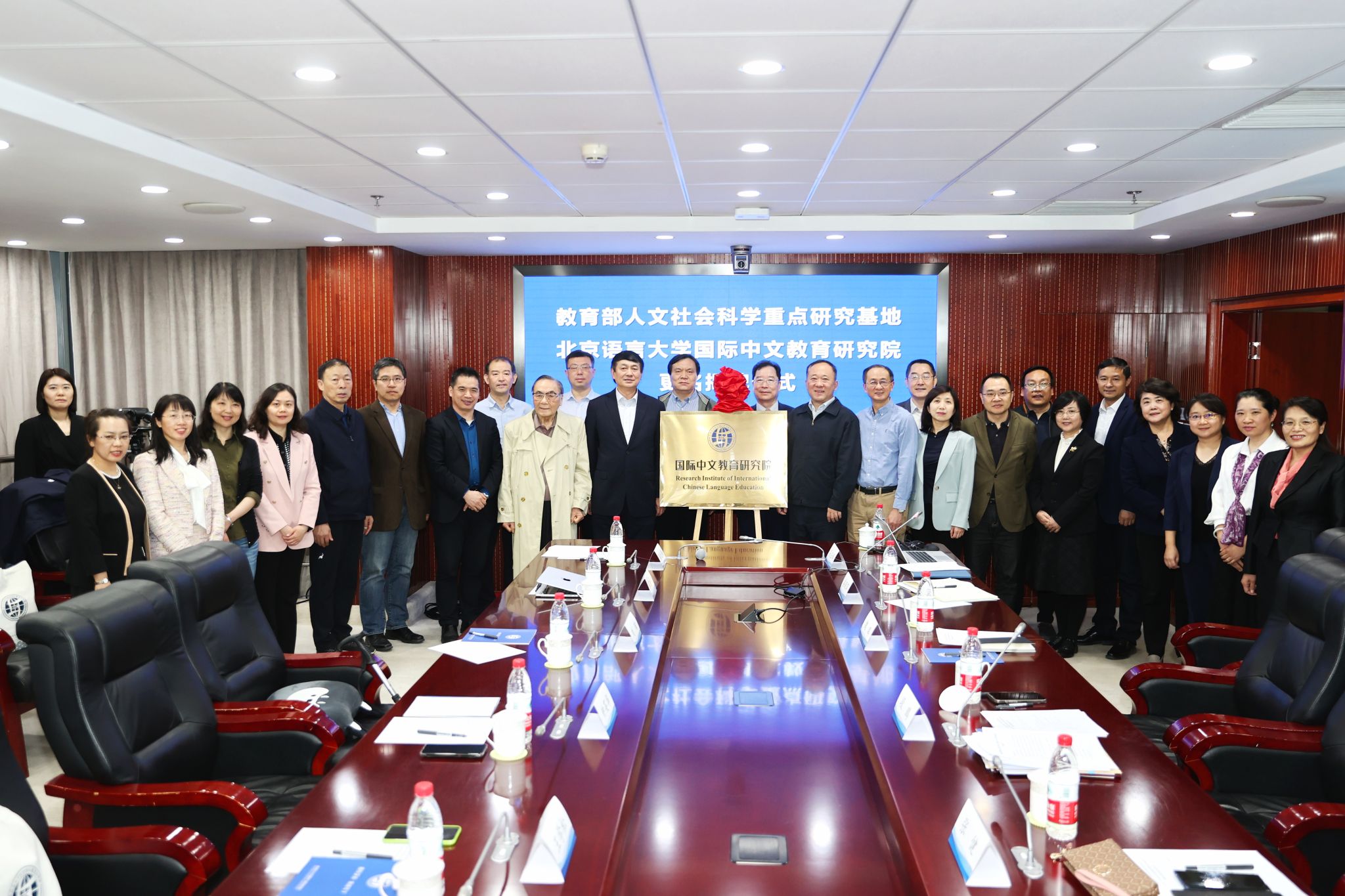 4月19日,教育部人文社会科学重点研究基地北京语言大学国际中文教育研究院更名揭牌仪式隆重举行,会议由基地主任、院长吴应辉主持。北京语言大学校长段鹏出席仪式并致辞、校党委副书记魏晖宣读教育部同意基地更名批复文件。出席本次仪式的还有世界汉语教学学会会长、全国汉语国际教育专业学位研究生教育指导委员会副主任委员、天津师范大学前校长钟英华,北京语言大学国际中文教育资深学者刘珣先生,北京师范大学国际中文教育学院党委书记、全国汉语国际教育教指委委员王学松,全国汉语国际教育教指委委员、北京师范大学教授宋继华,中央民族大学国际教育学院院长陈天序,北京外国语大学科研处处长张天伟,新疆师范大学国际文化交流学院院长邓新、副院长李敬欢、教授郭卫东,浙江师范大学国际文化与社会发展学院院长王辉,以及北京语言大学党委常委、组织部部长张健教授,学校办公室主任李志坚主任,科研处副处长金飞飞,发展规划与学科建设办公室主任颜伟,语言科学院院长曹文,国际学生教育政策与评价研究院院长王佶旻,汉学与中国学学院常务副院长李萍,国际中文学院党委书记梁彦民、院长沈庶英,应用中文学院院长苏英霞,教师教育学院院长施家炜、教授杨玉玲。参会本次会议的还有国际中文教育研究院教师及在读博士、硕士研究生。